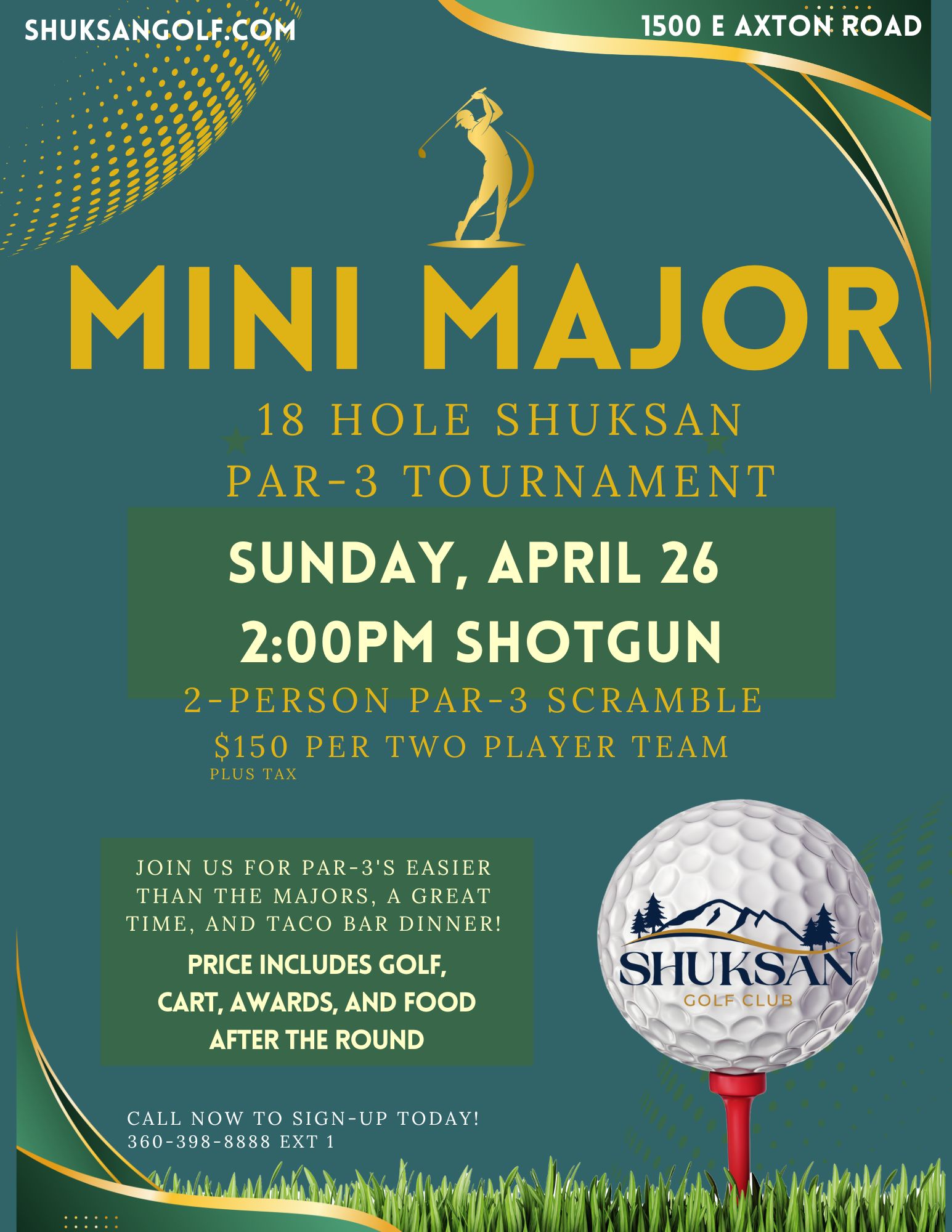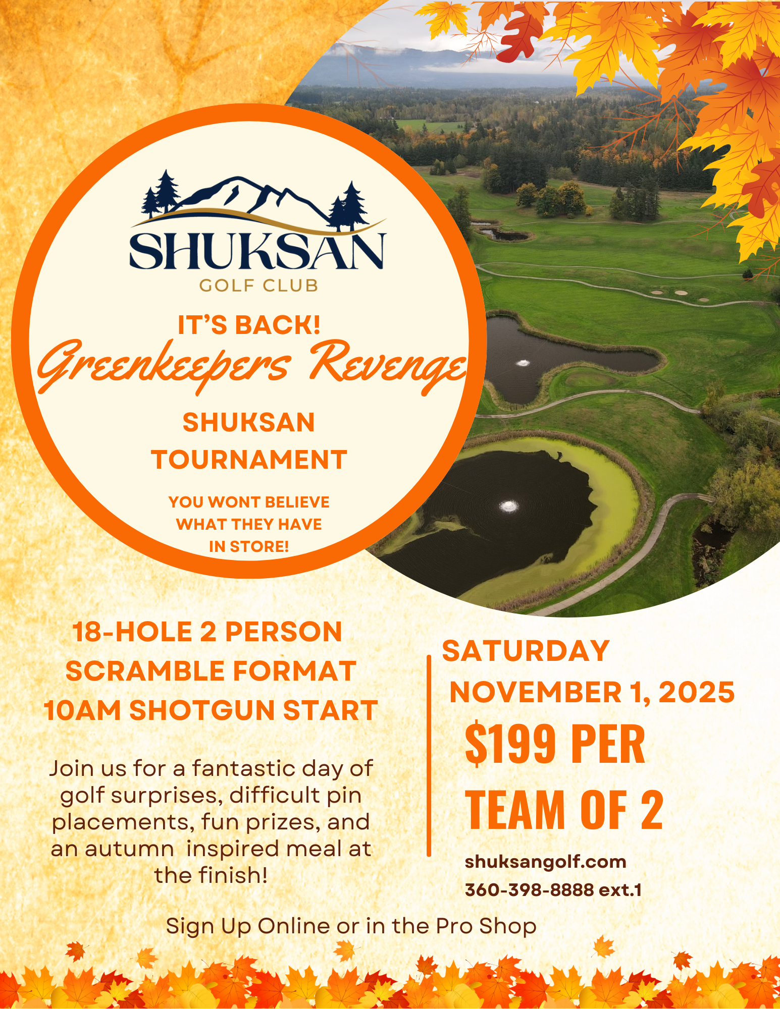 Whether you’re planning a private, charity, or corporate golf tournament, we do the planning and heavy lifting for you! The team at Shuksan Golf Club are experts at planning and managing golf tournaments up to 250 people. On-course contests, customized organization’s merchandise, and a curated menu exclusively for your event are just a tip of the ice berg of the amenities we offer.